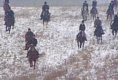stawiło się 16 koni, kierzbuńskich i przyjezdnych (ze stajni Adasia Jaworskiego, Szaflickich, Wąsowiczów). Część niestety przestraszyła nieznośna, typowo październikowa pogoda....Mimo, że śnieg zasiekał przy pomocy silnego wiatru - większość uczestników założyła białe bryczesy i fraki, najwięcej było zielonych fraczków kierzbuńskich! :)) Czuć było, że to szczególny moment i że następująca po nim jazda to wcale nie zwykły teren, jakich wiele bywało...