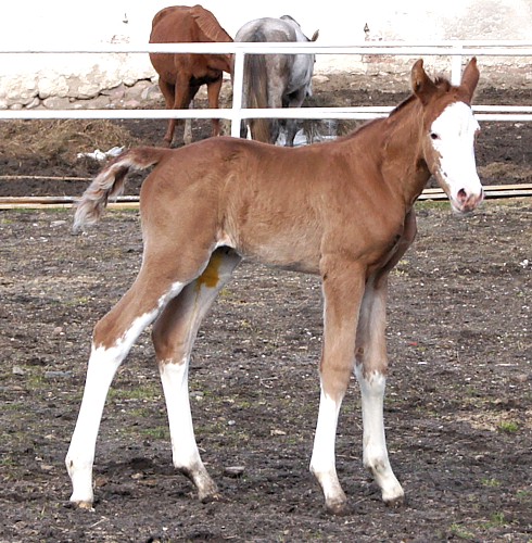 22 lutego o godz. 1.45 przyszedł na świat pierwszy źrebaczek w tym roku - Tuluza urodziła rudego ogierka z nieregularną latarnią, białą skarpetą na lewym tyle i jasnymi "okularami". Ogierek nazywa się TANTAL:)))) Chłopaczek jest bardzo silny i wciąż robi małe kupeczki, a babcia Halabarda wychodzi z siebie, aby go chociaż dotknąć:))) Luna z drugiej strony i Pandora na przeciwko też są mocno zaaferowane tą nową sytuacją!:)))) Zresztą wszystkie konie w stajni patrzyły z zainteresowaniem i nieskrywaną zazdrością tylko na Tuluzę i jej wielkie "maleństwo"!:)