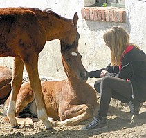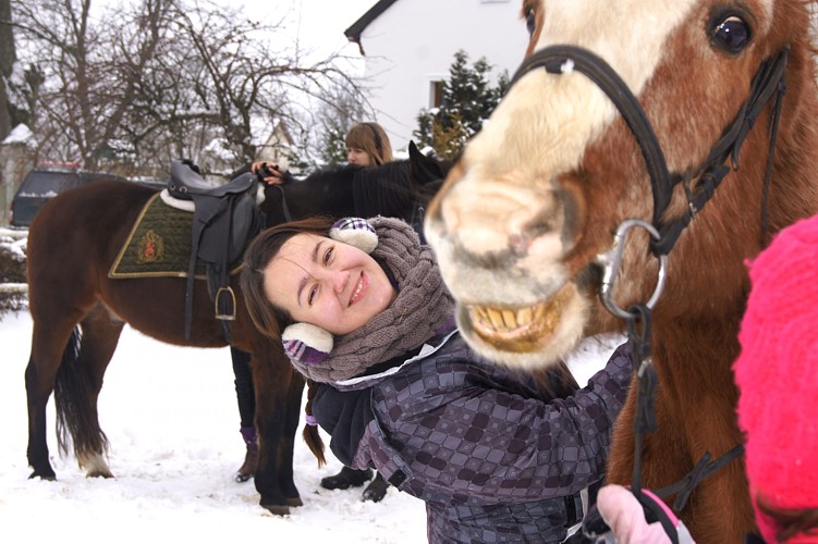 Ostatnie tygodnie były dla nas bardzo pracowite, bo gościliśmy jednocześnie obozowiczów zimowych dorosłych i mniej dorosłych i jednocześnie artystów na plenerze malarskim. Obozowicze częściowo przygotowywali się do egzaminu na odznaki PZJ, a jednocześnie wszyscy pilnowaliśmy źrebiąt i ewentualnych nowych porodów. Temperatury nas nie rozpieszczały, praktycznie przez cały ostatni tydzień trzymały się poniżej 20st. C i to w dzień!... Ale co tam, na szczęście jest hala, więc jazdy trwały nieprzerwanie:)) A teraz jest już coraz cieplej i z utęsknieniem czekamy na wiosnę!:))