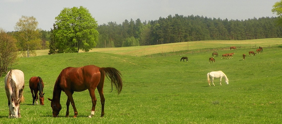 Zeus natomiast na pastwisku ma mało pewności siebie, niemniej takie imię zobowiązuje! :) Cieszymy się, że są z nami, im ta sytuacja chyba także bardzo odpowiada!