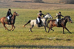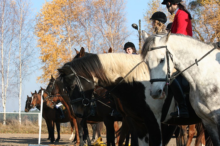 Blisko 20 osób szkoliło się pod okiem Andrzeja Makacewicza na tym 3-dniowym spotkaniu z "naturalem". Tematem przewodnim był szacunek. Mnóstwo fantastycznych ćwiczeń z ziemi, z siodła. Także w lesie, na stromych górkach, w rzece - na kantarkach sznurkowych zamiast ogłowii wędzidłowych. Bardzo nam się podobało to "naturalne" spojrzenie na jeździectwo, a szczególnie argumenty uzasadniające "święte" zachowania przy koniu. To doskonale uzupełnia klasyczne podejście do konia i jazdy konnej.