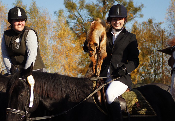 W przepięknej słonecznej październikowej aurze Królową Polowania Obozowiczów 2013 została po zażartej gonitwie Julia Bzymek - lisicą była Agnieszka Olszewska na swojej Cytrze. Natomiast na tzw. "dużym" hubertusie Lisicę (Elę Witkowską-Szaflicką) złapał bardzo mocno zdeterminowany Darek Biskupski... zabawa była przednia i nie zepsuła jej nawet dżdżysta listopadowa pogoda! No i odnotujmy ewenement: mimo, że w "dużym" hubertusie uczestniczyło ok. 30 koni - zdarzył się tylko jeden upadek :)