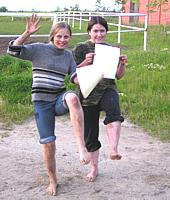 Wkrótce zawody - poraz pierwszy w ujeżdżeniu i poraz 30 w skokach:) Termin skoków: 5-6 czerwca, ujeżdżenie: 6 czerwca - sędziują Państwo Helena i Józef Zagorowie. Dla zainteresowanych są też do pobrania propozycje zawodów w skokach i ujeżdżeniu! W ten weekend natomiast (28-30 maja) jedziemy na rajd dwudniowy - kierunek Giławy / Krzywonoga:))) Wybaczcie to milczenie, mam za mało rąk, przydałoby się mnie całą sklonować:)) Newsy ułożyłam chronologocznie: W weekend 21 - 23 maja gościliśmy przesympatyczny klub jeździecki z BreBanku. Czas ten spędziliśmy bardzo intensywnie na jazdach i tańcach do białego rana... Wytańczyliśmy się za wszystkie czasy!:) Odwiedziliśmy też Pana Matyska i popluskaliśmy się w rzece!:)